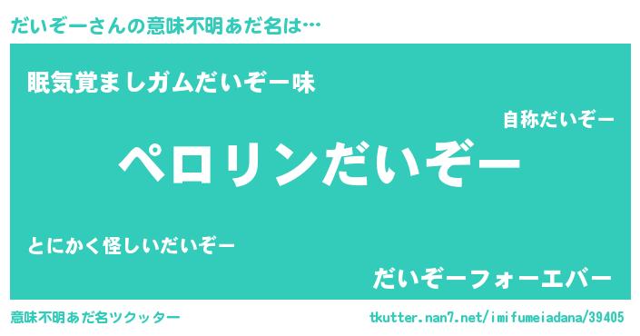| 男性向けラノベタイトル風あだ名 | 『うちのだいぞーが世界を掌握している!』 |