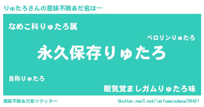 | ヘコむあだ名 | 『りゅたろ(笑)』『りゅにゅー』 |