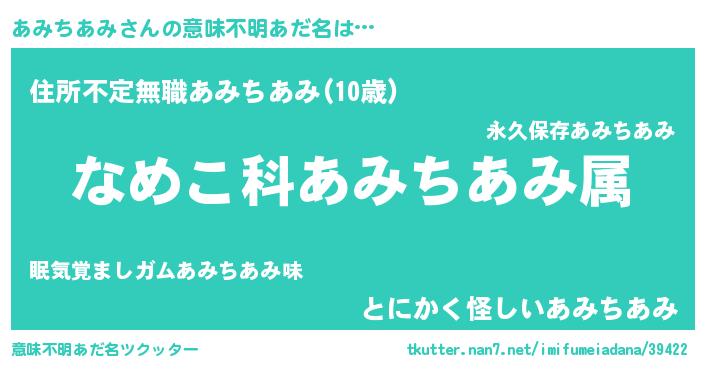 | ヒーロー風カッコイイあだ名 | 『仮面アミダー』『魔戒騎士アミ』 |