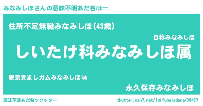 | 男性向けラノベタイトル風あだ名 | 『ミナミシホスレイヤー』 |