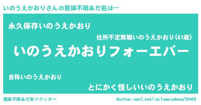 | 男性向けラノベタイトル風あだ名 | 『やはりいのうえかおりの青春ラブコメはまちがっている 』 |