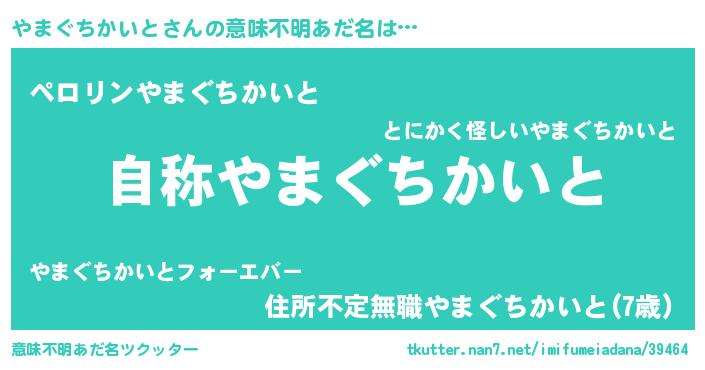 | 欧米人風あだ名 | 『やまぐちかいと・ステッグマイヤー』 |