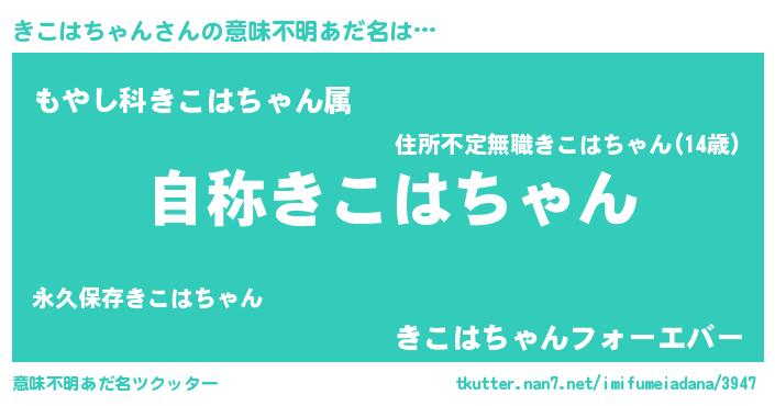 | ヒーロー風カッコイイあだ名 | 『サイバー戦士キコハチャン』 |