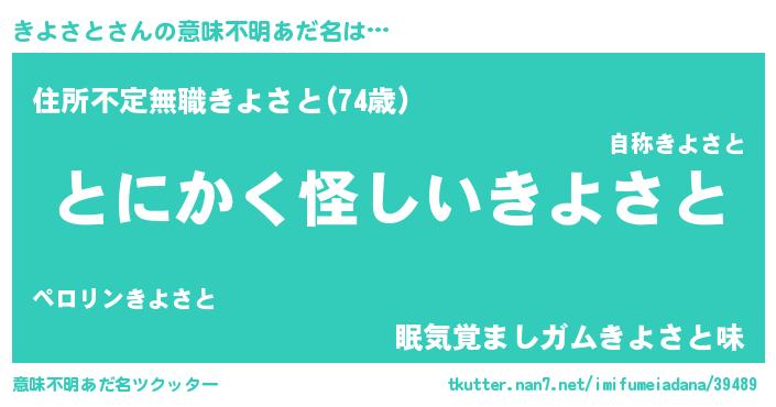 | 男性向けラノベタイトル風あだ名 | 『きよさとの嫁は女の子じゃないと思った?』 |