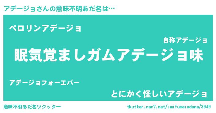 | 男性向けラノベタイトル風あだ名 | 『ノーゲーム・ノーアデージョ』 |