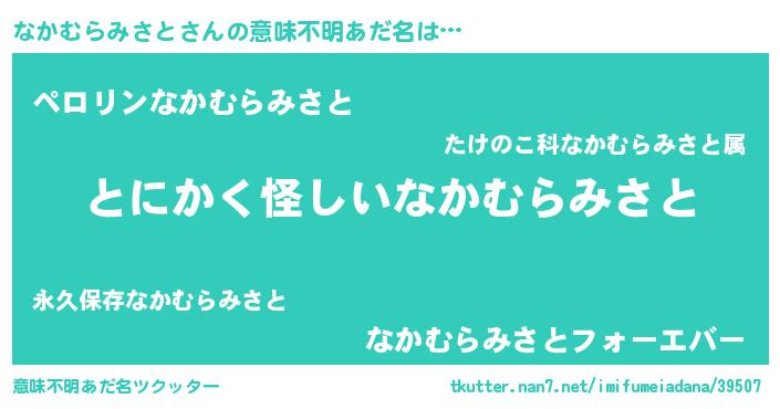 | 女子向けラノベタイトル風あだ名 | 『なかむらみさと様がみてる』 |
