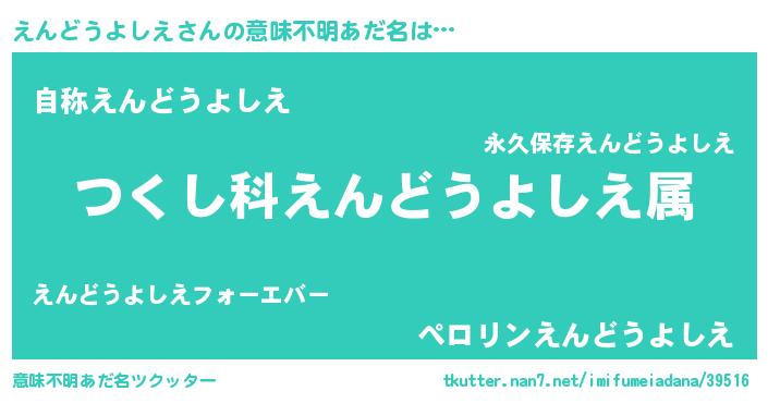 | 男性向けラノベタイトル風あだ名 | 『えんどうよしえ~年齢イコール彼女いない歴の魔法使い~』 |