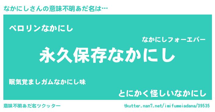 | 男性向けラノベタイトル風あだ名 | 『なかにしという概念が存在しない退屈な世界 』 |