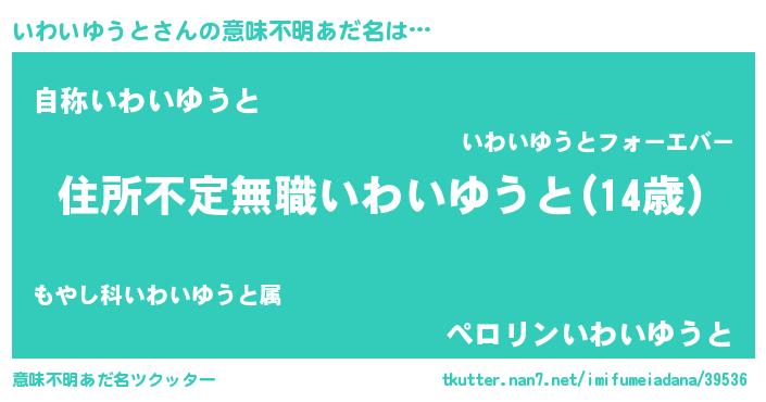 | 男性向けラノベタイトル風あだ名 | 『いわいゆうとに滅ぼされるだけの簡単なお仕事です』 |