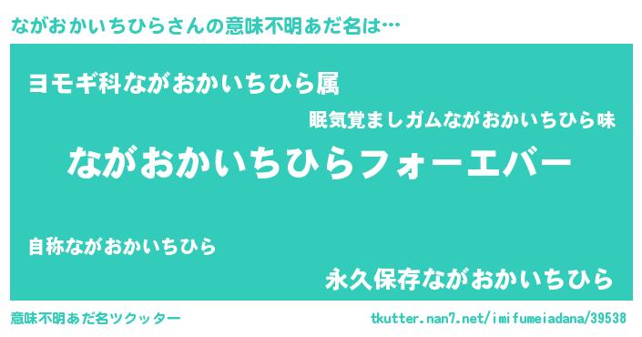 | 男性向けラノベタイトル風あだ名 | 『やはりながおかいちひらの青春ラブコメはまちがっている 』 |