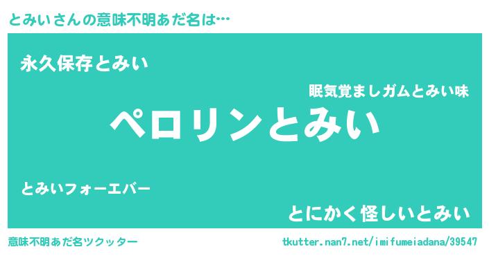 | ヒーロー風カッコイイあだ名 | 『スーパートミイ』『ネオトミイ』 |