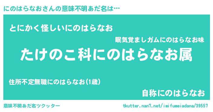 | 男性向けラノベタイトル風あだ名 | 『転生したらにのはらなおだった件』 |
