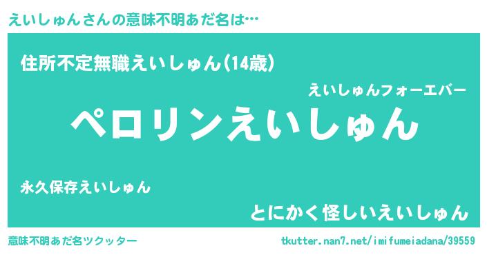 | 男性向けラノベタイトル風あだ名 | 『えいしゅんの憂鬱』 |