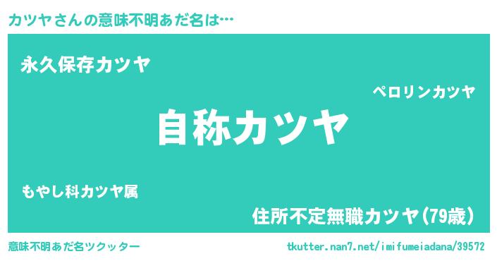 | 男性向けラノベタイトル風あだ名 | 『魔法科高校のカツヤ』『カツヤの憂鬱』 |