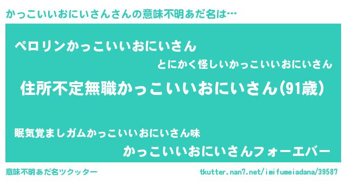 | 胡散臭い通販商品みたいなあだ名 | 『世界中を虜にした世界で10本だけ現存している希少なブランデー…その名も「かっこいいおにいさん」』 |