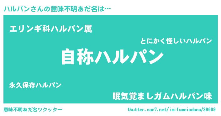 | ヒーロー風カッコイイあだ名 | 『超時空戦士ハルパン』『銀牙騎士ハル』 |