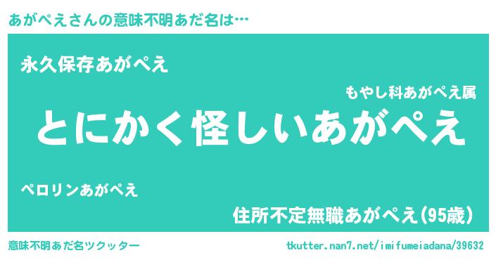 | 女子向けラノベタイトル風あだ名 | 『あがぺえは平凡を望む』 |