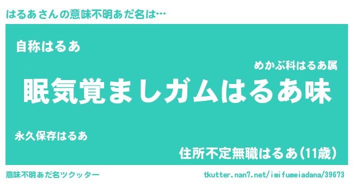 | ヘコむあだ名 | 『はるあ(遠い目)』『はるっちょ』 |