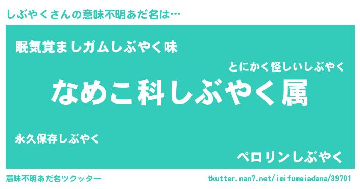 | ヒーロー風カッコイイあだ名 | 『愛の使者しぶやく』『スーパーシブヤク』 |