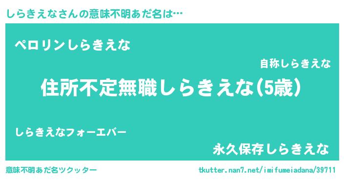 | 男性向けラノベタイトル風あだ名 | 『この素晴らしい世界にしらきえなを!』 |
