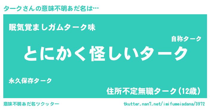 | 女子向けラノベタイトル風あだ名 | 『タークの卵を拾いまして』 |