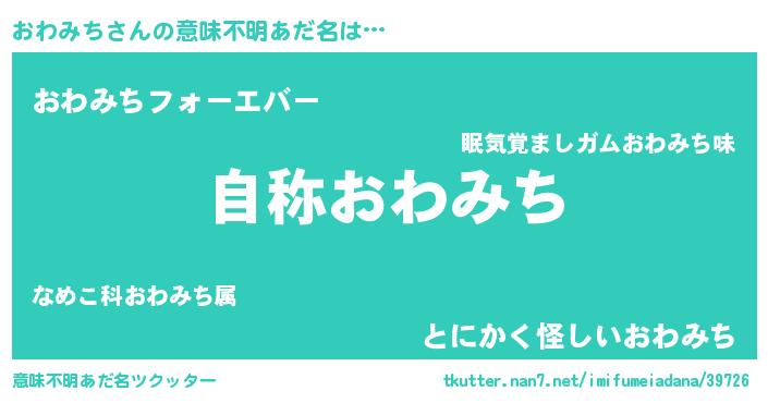 | 欧米人風あだ名 | 『アンジェラ・おわみち』 |