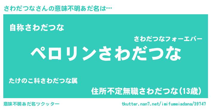 | 男性向けラノベタイトル風あだ名 | 『さわだつなの憂鬱』 |