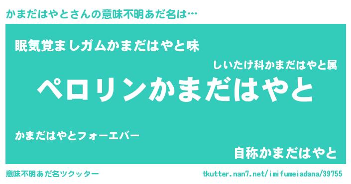 | 男性向けラノベタイトル風あだ名 | 『カマダハヤトアートオンライン』 |