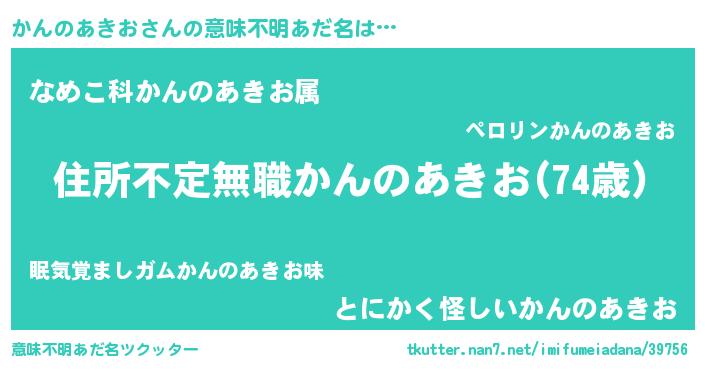 | 料理風あだ名 | 『かんのあきおのカルパッチョ風』 |
