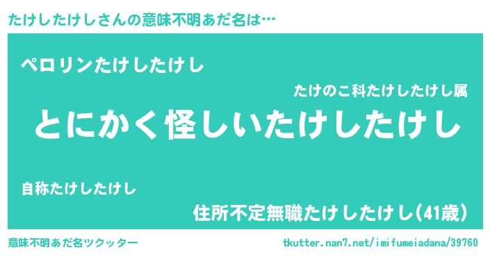 | 料理風あだ名 | 『たけしたけしの豆乳スープ』 |
