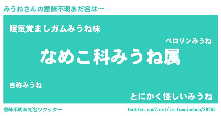 | ヒーロー風カッコイイあだ名 | 『愛の使者みうね』『黄金騎士ミウ』 |