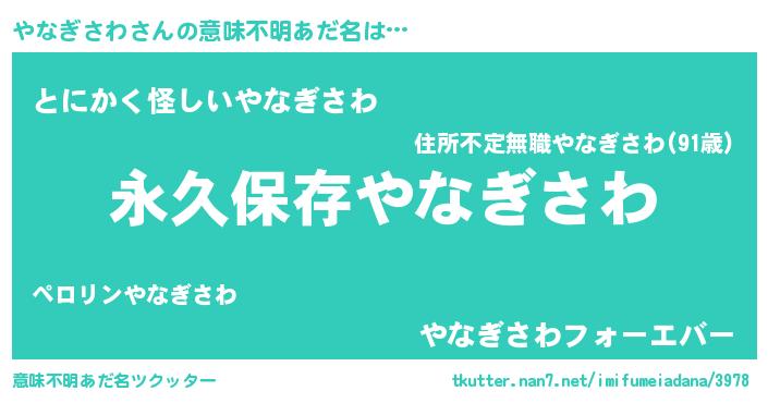 | ポケモン風あだ名 | 『ゼニヤナ』『ヒヤナギサワ』 |