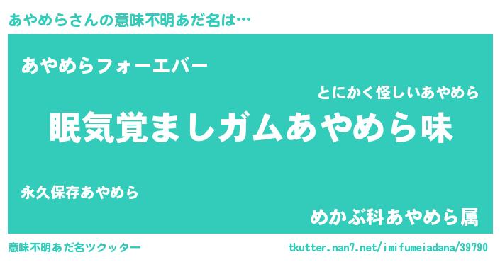 | ポケモン風あだ名 | 『アックウザ』『アヤメダネ』 |