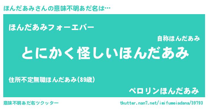 | ポケモン風あだ名 | 『ヒホンダアミ』『ホンダダネ』 |