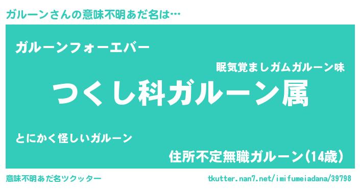 | ヘコむあだ名 | 『酢こんぶ』『ガルお』『ガルふぇ~』 |