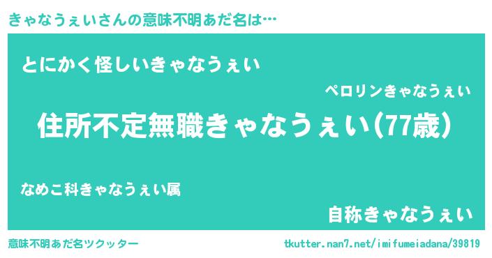 | 男性向けラノベタイトル風あだ名 | 『魔弾の王ときゃなうぇい』 |