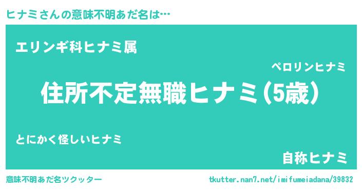 | ヘコむあだ名 | 『ヒナにー』『ヒナを』『ヒナミ(笑)』 |