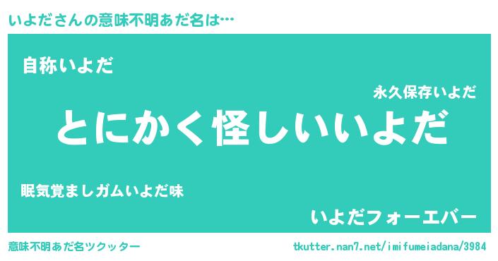 | ヒーロー風カッコイイあだ名 | 『暗黒騎士イヨ』『最強戦士イヨダ』 |