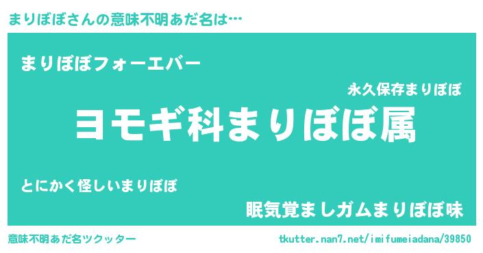 | ヒーロー風カッコイイあだ名 | 『ウルトラまりぼぼマン』『ネオマリボボ』 |