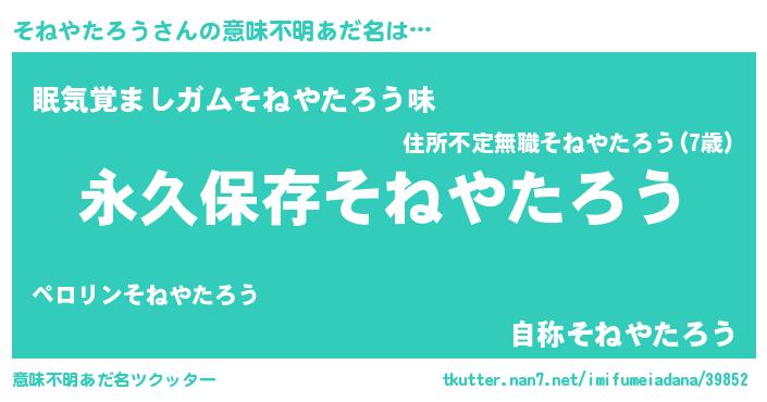 | 胡散臭い通販商品みたいなあだ名 | 『来世でも幸せになれる健康食品…その名も「そねやたろう」』 |