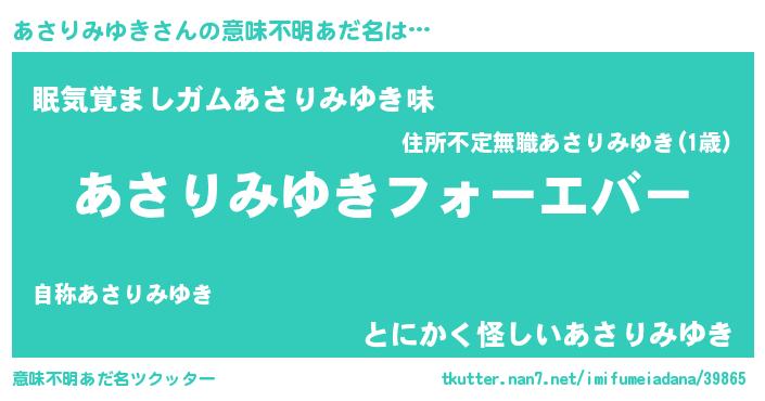 | 女子向けラノベタイトル風あだ名 | 『あさりみゆきの雑貨屋さん』 |