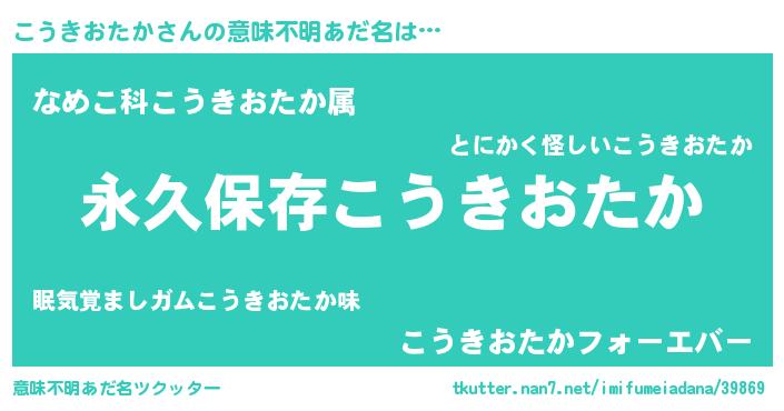 | ヘコむあだ名 | 『こうきおたか(遠い目)』『なまこ酢』 |