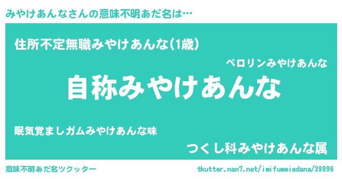 | 女子向けラノベタイトル風あだ名 | 『みやけあんなストレイドッグス』 |