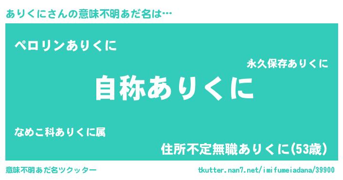 | 男性向けラノベタイトル風あだ名 | 『Re:ありくにから始める異世界生活』 |