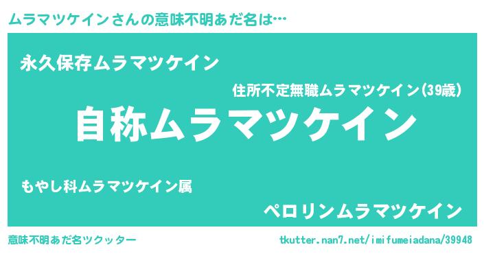 | 肩書あだ名 | 『ムラマツケイン総統』 |