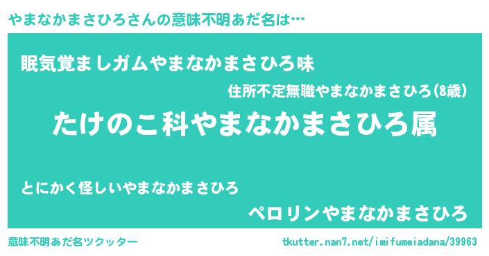 | 男性向けラノベタイトル風あだ名 | 『転生したらやまなかまさひろだった件』 |