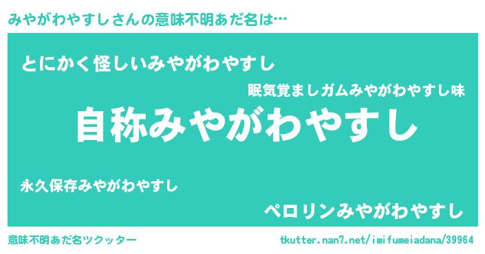 | 肩書あだ名 | 『みやがわやすし総統』 |