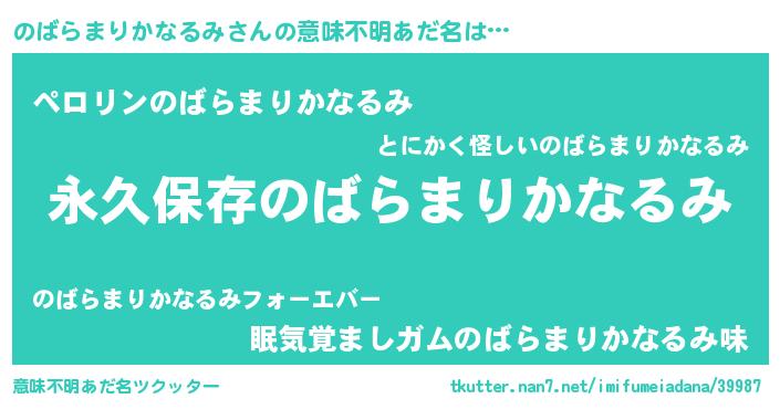 | 料理風あだ名 | 『満腹のばらまりかなるみマフィン』 |