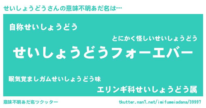 | ファンタジー風あだ名 | 『エターナルセイショウドウー』 |