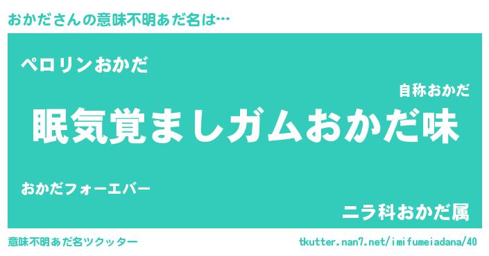 | ヘコむあだ名 | 『おかにゅー』『酢こんぶ』 |
